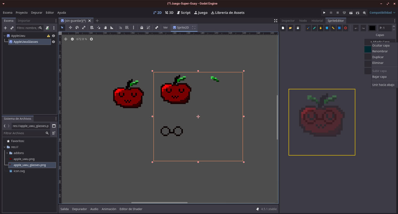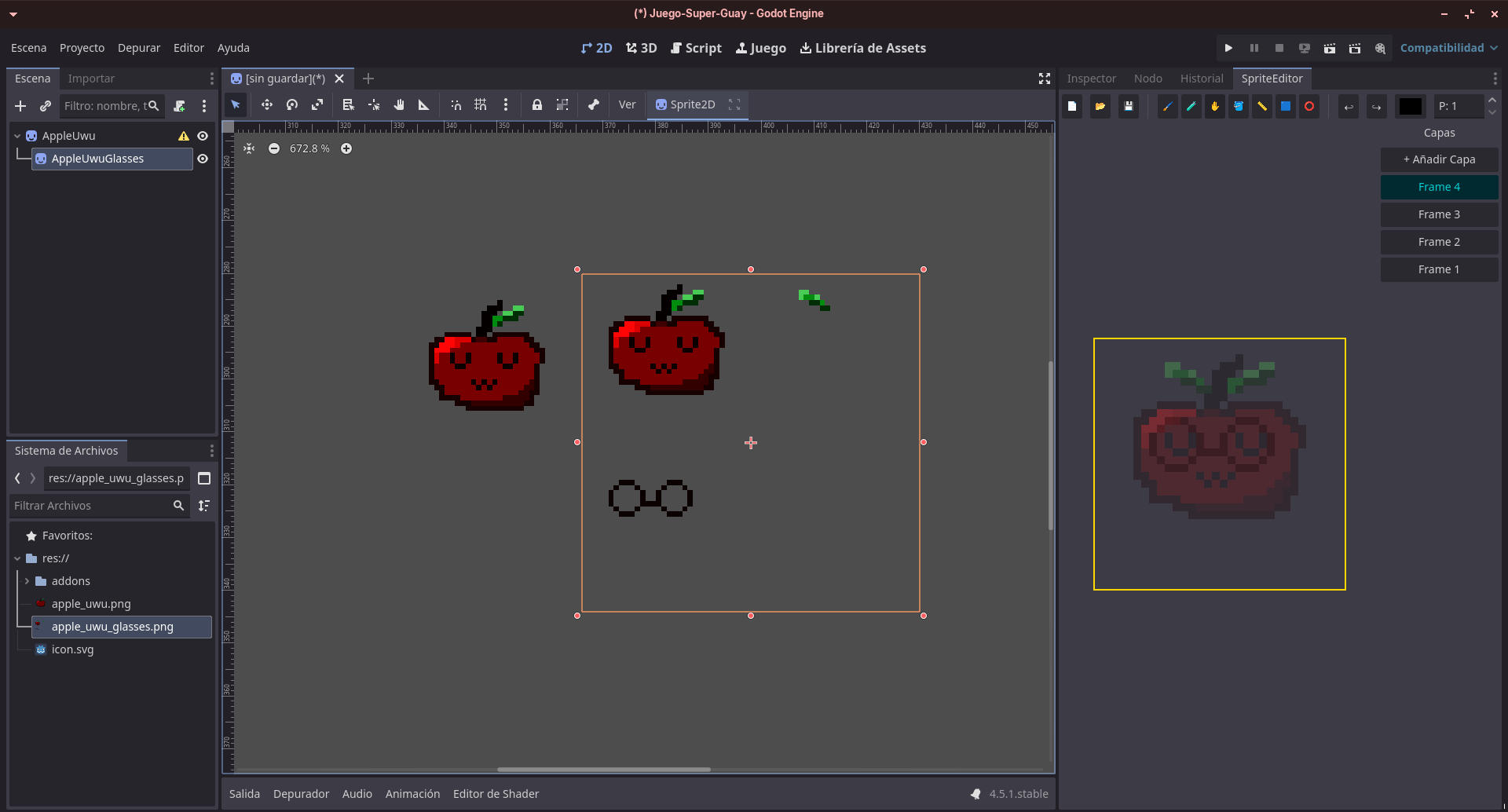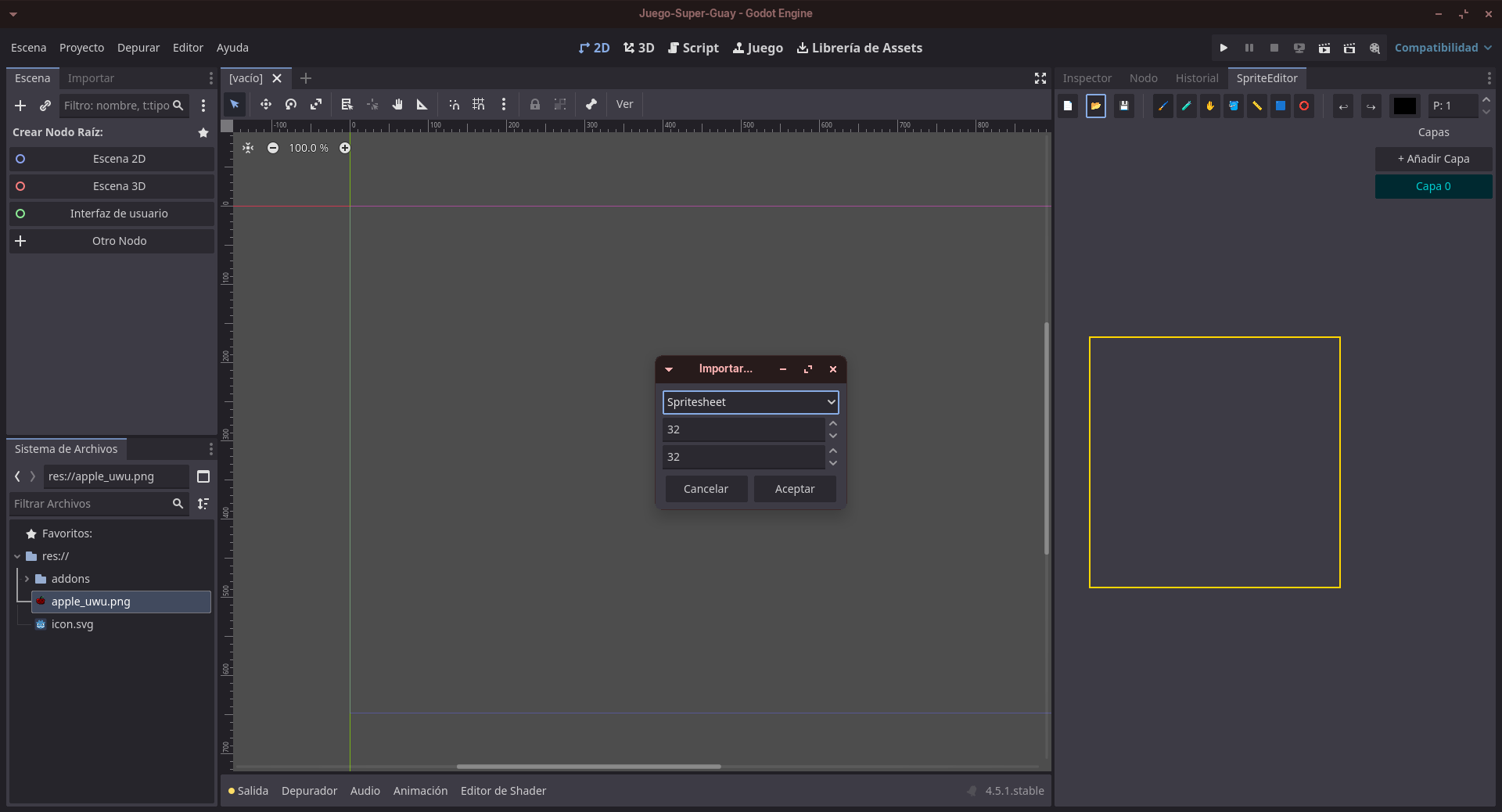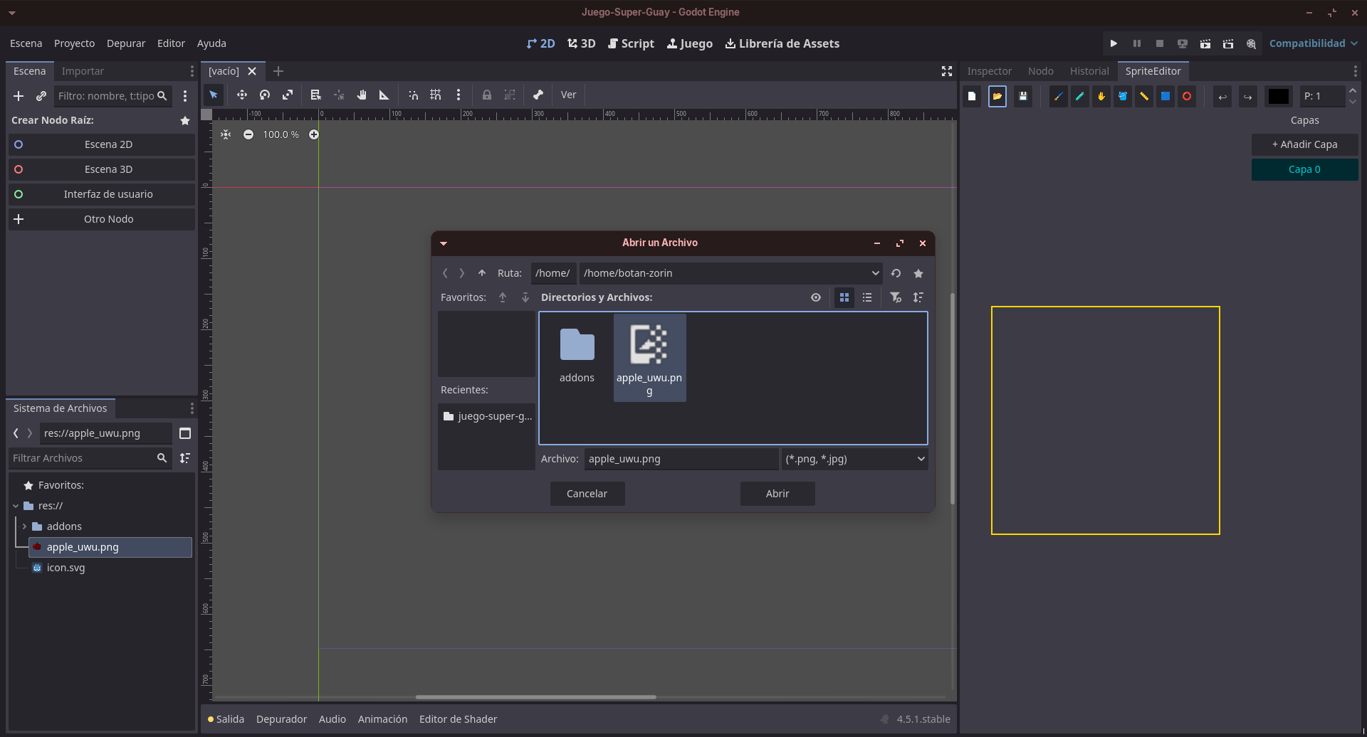 Sprite-Gditordentro de la carpetares://addons/de tu proyecto de Godot. - Activa el plugin en Ajustes del Proyecto -> Plugins.